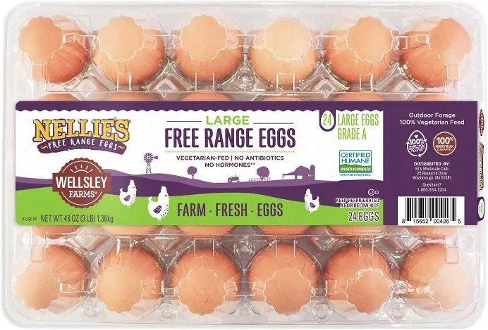 Our eggs come from Nellie’s, a farm local to New Hampshire. Nellie’s eggs are free range, and Certified Humane. This ensures they have outdoor space, proper nutrition, and veterinary care.